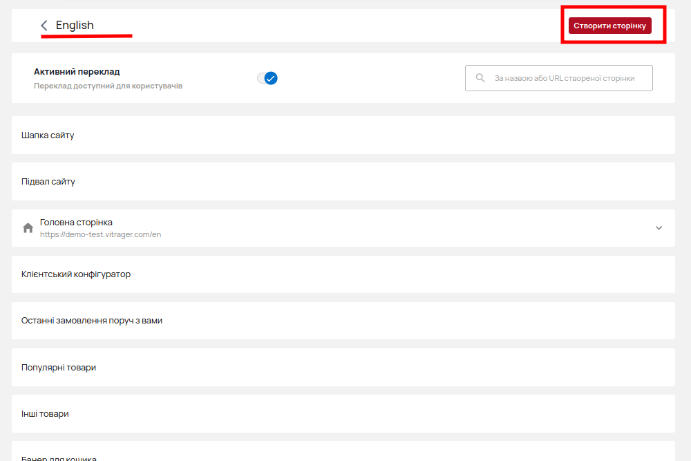 Щоб додати сторінку, виберіть певну мовну версію та натисніть «Створити сторінку».